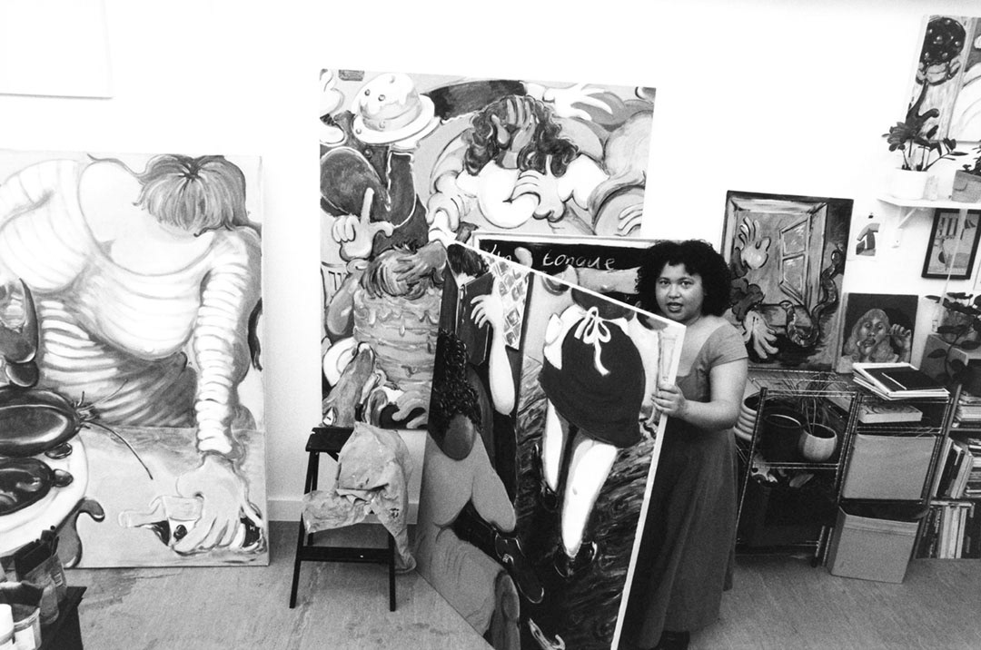 In the vibrant, unsettling world of Olivia Sterling, laughter and pain walk hand in hand. Her paintings, with their bright surfaces and flat, confident lines, peel back the comforts of everyday life to reveal the deep, persistent absurdities of race, identity, and oppression.